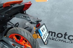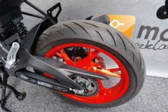 Prosta i minimalistyczna konstrukcja elementów pod siedzeniem TRX 125 doskonale pasuje do ogólnego projektu maszyny, a tylne oświetlenie LED podkreśla proste linie. Praktyczne uchwyty pasażera harmonijnie wpasowują się w smukłą sylwetkę TRX 125, nie rezygnując przy tym z użyteczności.