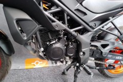 Stalowa rama kratownicowa TRX 125 łączy w sobie niską wagę i wysoką sztywność. Parametry te w przypadku TRX 125 wielokrotnie przekraczają wymagania wobec tego typu motocykli. Dodatkowym walorem tej ramy jest jej oryginalny wygląd.