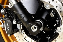 Dbałość o bezpieczeństwo: dwukanałowy system ABS Bosch, dwie tarcze hamulcowe 298 mm i zaciski Nissin. Z takim zestawem droga hamowania znacznie się skraca, co bezpośrednio przekłada się na nasze bezpieczeństwo. Amatorzy jazdy off roadowej docenią możliwość wyłączenia ABS przy użyciu jednego przycisku.