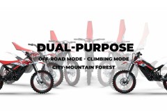 Przedstawiamy ostateczny motocykl terenowy o dwóch zastosowaniach, napędzany elektrycznie! Ten nowatorski motocykl został zaprojektowany dla przygód poszukujących motocyklistów, którzy chcą eksplorować niezbadane tereny. Z mocnym i wymiennym akumulatorem, łatwo można go ładować w drodze. Wzmocnione koła z aluminium serii 7, z prostymi szprychami, zapewniają błyskawiczną moc hamowania przy lekkich tarczach hamulcowych z przodu i z tyłu.