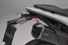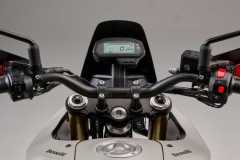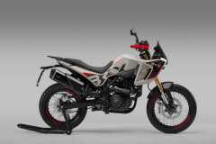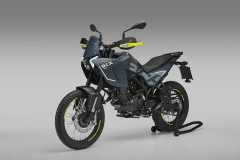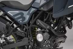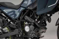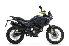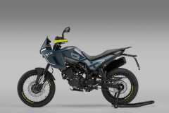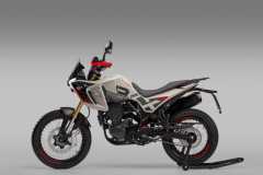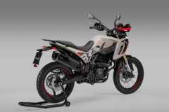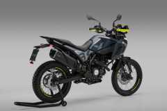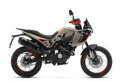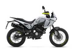 Układ hamulcowy obejmuje system ABS, przednią tarczę 280 mm z radialnym zaciskiem czterotłoczkowym oraz tylną tarczę 240 mm z jednotłoczkowym zaciskiem pływającym. Szprychowe koła z oponami terenowymi zapewniają wysoką zwinność i pewność prowadzenia.