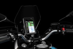 Pionowy, rajdowy ekran oferuje 3 tryby jazdy (Standard, Sport i Off-road). Pełna integracja z Morbidelli Connect: nawigacja GPS, przycisk SOS, system antykradzieżowy ze zdalnym unieruchomieniem oraz 1 rok dostępu do aplikacji w zestawie.