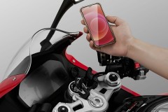 ➡️ Hamulec przód: 2 x czterotłoczkowe radialne hamulce tarczowe Brembo 320 mm z ABS
