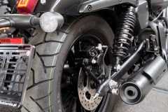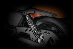 Podwójne amortyzatory tylne posiadają regulowane napięcie wstępne i progresywne sprężyny.