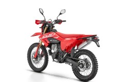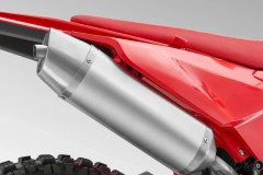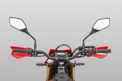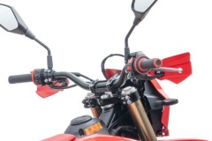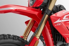Odwrócone przednie zawieszenie o dużym skoku z podwójnym tłumieniem oraz tylne zawieszenie sprężynowo-olejowe skutecznie pochłaniają nierówności i podnoszą komfort jazdy. Osłony lag chronią widelec przed uderzeniami kamieni i odpryskami, dzięki czemu zawieszenie zachowuje płynność pracy nawet w trudnym terenie.