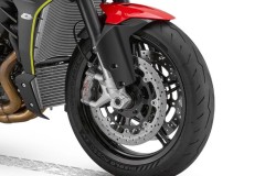 Rzędowy, czterocylindrowy silnik 921 cm³ z chłodzeniem cieczą zapewnia czołowe w klasie osiągi — do 129 KM. Starannie zestrojona krzywa mocy daje jedwabiście płynną kontrolę na niskich obrotach i porywającą „eksplozję” na wysokich; gdy obroty rosną, moc wchodzi natychmiast, serwując przyspieszenia podnoszące adrenalinę. 93,0 Nm momentu, świetna praca w górnym zakresie i v-max 233 km/h, a do tego sprzęgło antyhoppingowe dla gładszych zmian i lepszej kontroli.