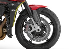 Przednie i tylne zaciski Brembo zapewniają szybką, bezpośrednią i łatwo dozowalną siłę hamowania. Niezależnie od awaryjnego zatrzymania po mocnym przyspieszeniu czy precyzyjnego dohamowania na granicy przyczepności w złożeniu — kontrola wraca natychmiast, dając pełną pewność panowania nad motocyklem w każdych warunkach.