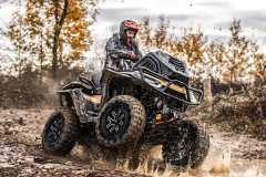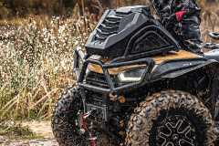 Elektryczne wspomaganie kierownicy, elektryczna wyciągarka 4500 lbs (nylon), szerokie wahacze, siedzisko z oparciem, hak holowniczy, kompozytowe bagażniki z tyłu, cyfrowy wielofunkcyjny wyświetlacz, oświetlenie Full-LED, przedni i tylny ochronny bumper, poszerzone błotniki, aluminiowe stopnie antypoślizgowe, 14" felgi aluminiowe z systemem Beadlock, 30" opony, w pełni regulowane amortyzatory z progresywnymi sprężynami, osłony dłoni, podgrzewane manetki, Smart Commanding System (SCS) + aplikacja mobilna Smart-Moving App.