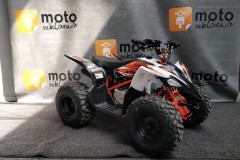 Sportowy quad Kayo AT125 jest doskonałym rozwiązaniem dla aktywnych dzieci, szczególnie tych, które posiadają już doświadczenie z czterokołowcami. Trzybiegowa, półautomatyczna skrzynia biegów, bieg wsteczny, wytrzymała, stalowa rama i mocny silnik – wszystkie te cechy sprawiają, że Kayo AT125 nie ma sobie równych w kategorii sportowych quadów 125. Mocna, jednocylindrowa, czterosuwowa jednostka napędowa o pojemności 124 cm3. Dzięki elektrycznemu rozrusznikowi dziecko samodzielnie będzie mogło odpalić quada. Quad posiada możliwość zablokowania rolgazu i ograniczenia prędkości. Półautomatyczna skrzynia biegów. Skrzynia biegów ze sprzęgłem odśrodkowym posiada trzy przełożenia do przodu i bardzo wygodny bieg wsteczny.Quad dla bezpieczeństwa posiada zrywkę zapłonu. Szeroki rozstaw osi. O bezpieczeństwa dba także szeroki rozstaw kół i osi (93,5 cm) – dzięki temu AT125 nie jest wywrotne. LED-owe oświetlenie w standardzie.